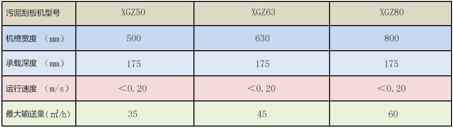 XGZ提升型干化污泥(含水率小于45%)和濕污泥(含水率大于60%)刮板輸送機(jī)主要技術(shù)參數(shù)表