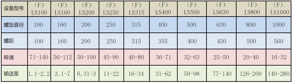 (F)LS系列螺旋輸送機主要技術(shù)參數(shù)表