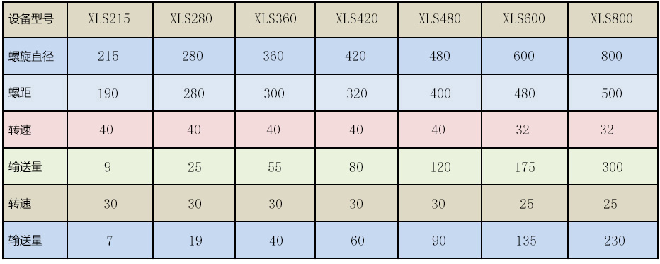 XLS系列無軸螺旋輸送機(jī)主要技術(shù)參數(shù)表